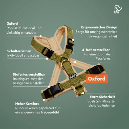 Ob Waldpfad, Stadtflair oder Tobestunde im Park, unser Oxfordgeschirr macht alles mit. Der robuste Stoff hält, was er verspricht, während die Polsterung dafür sorgt, dass sich dein Hund rundum wohlfühlt. Stabil, sicher und trotzdem angenehm weich getragen.