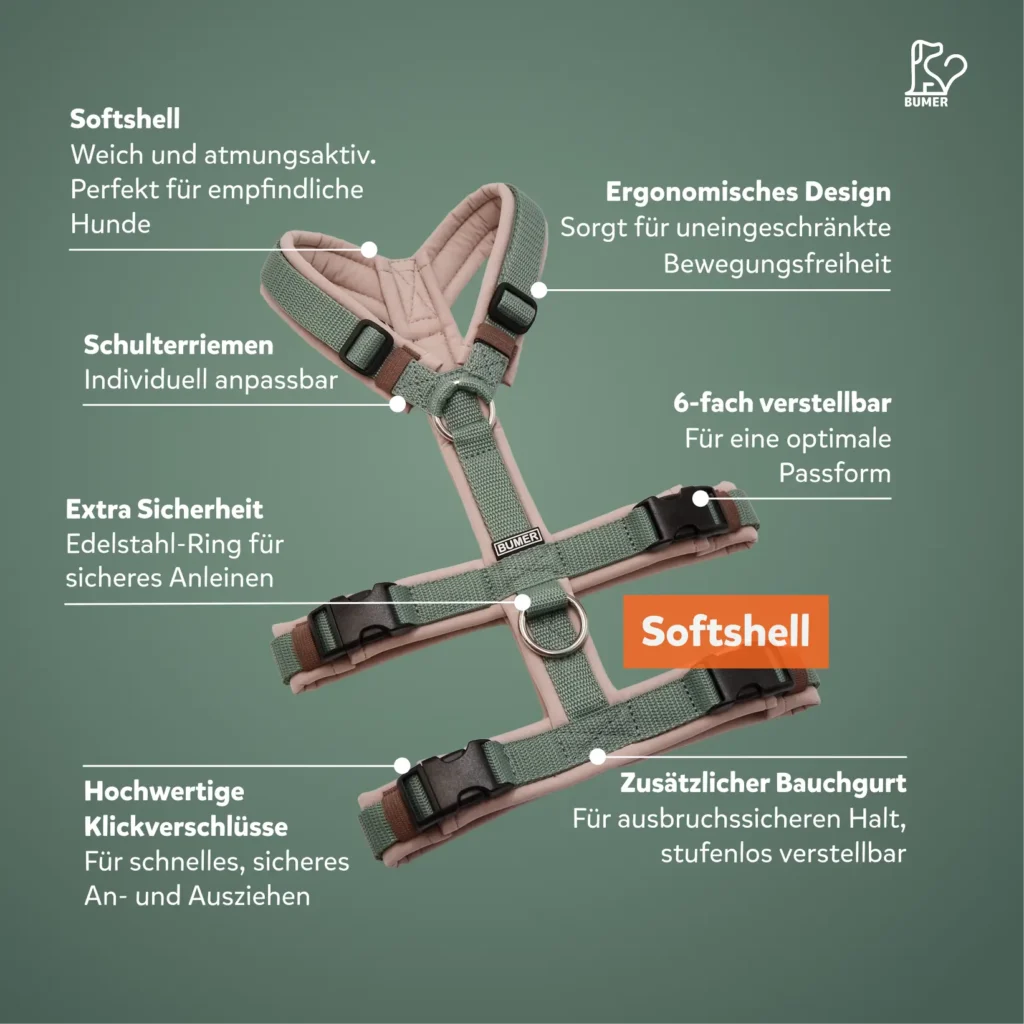 BUMER Softshell REFLEX Sicherheitsgeschirr, Hundegeschirr