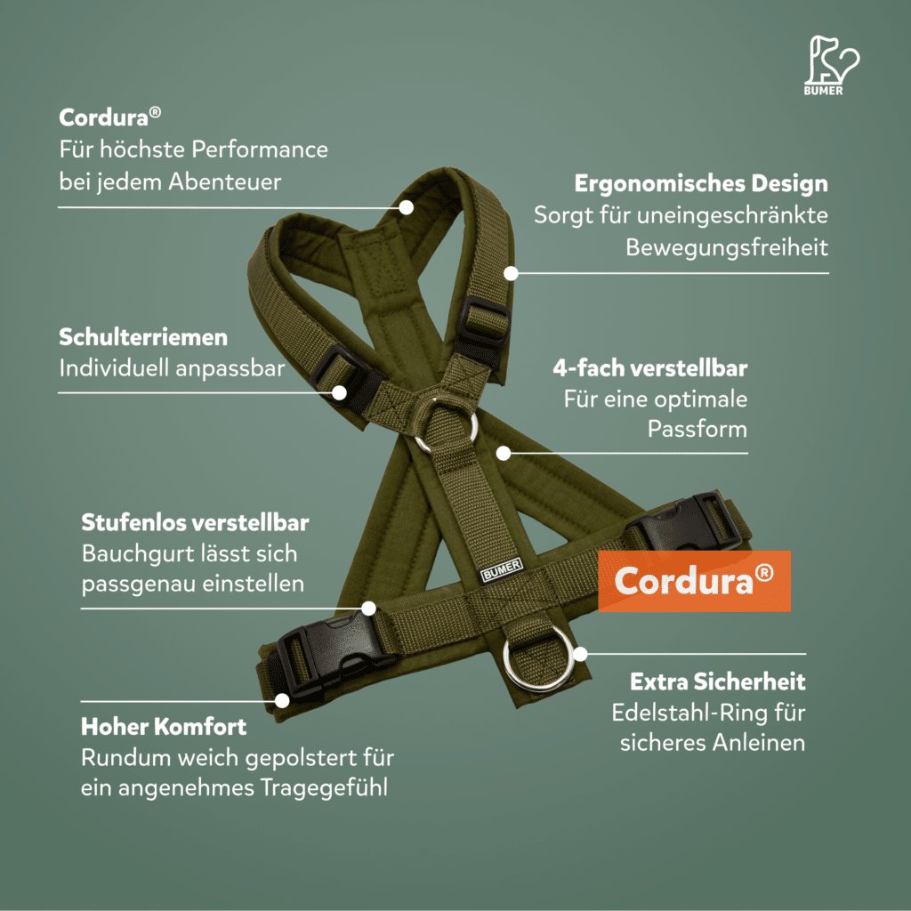 BUMER VenturFlex Pro CORDURA® Hundegeschirr, gepolstert, komplett konfigurierbar